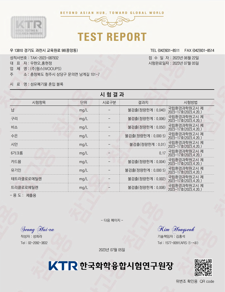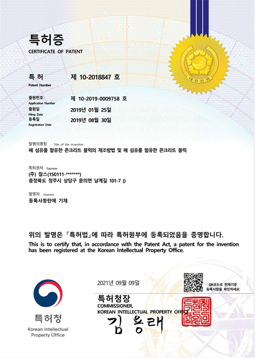 섬유 폐기물 혼입 콘크리트 블록_산업표준성능 전체