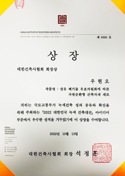 녹색건축대전 국토안전관리원장상 수상 - 국토교통부