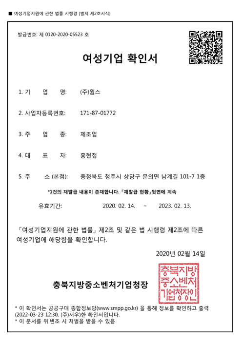 여성기업 확인서