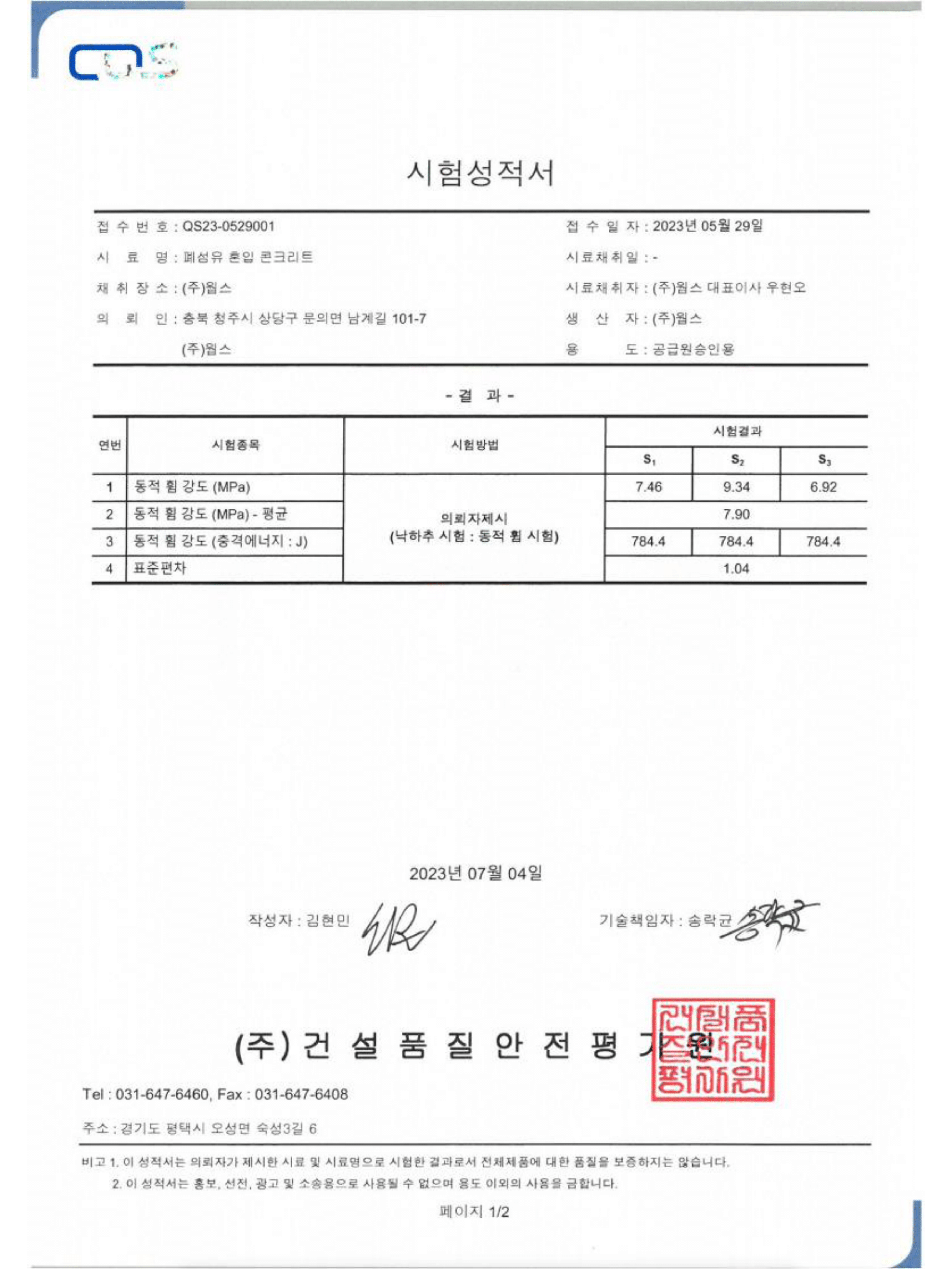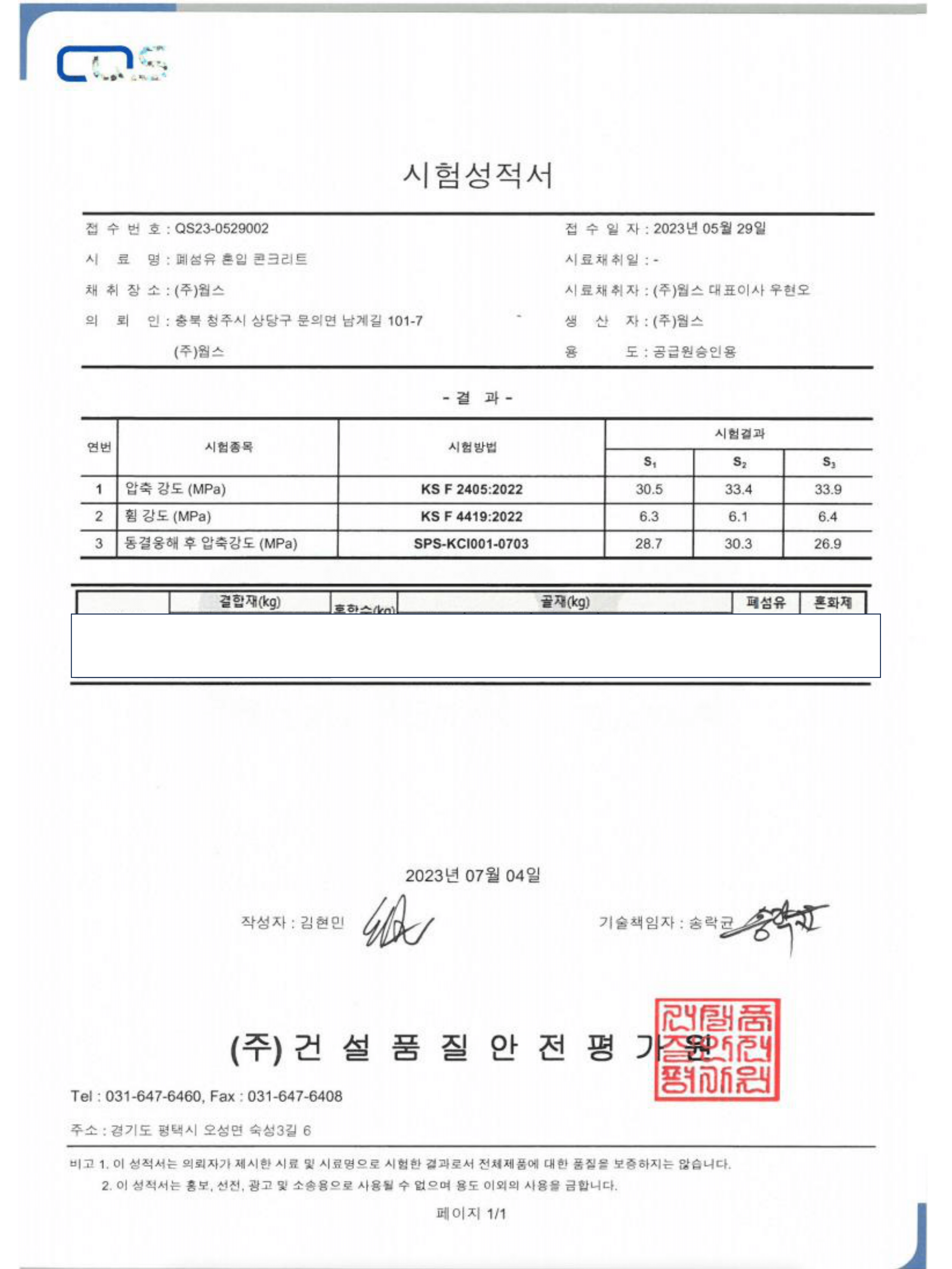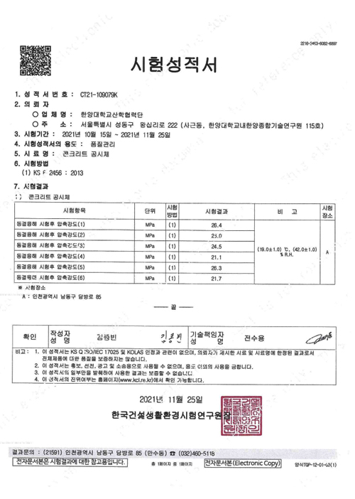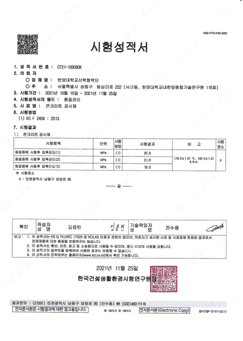 - 시험방법 : KS F 2456 -