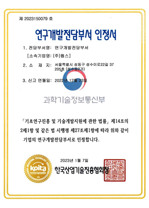 연구개발전담부서 인정서