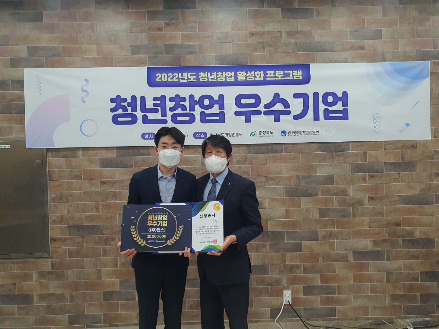 2022년 5월 12일 충청북도와 충청북도기업진흥원에서 주관하는 '충북 청년창업 우수기업'에서