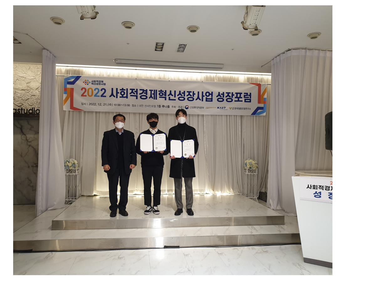 2022년 12월 21일 한국산업기술진흥원에서 주최한 '2022 사회적경제혁신 성장사업'에서