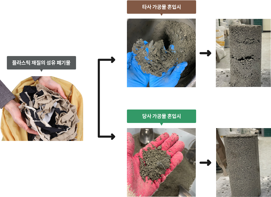 섬유 폐기물 소재화 공정에서의 기술적 차별성으로 기존 시장이 겪는 기술적 애로사항을 극복합니다.
